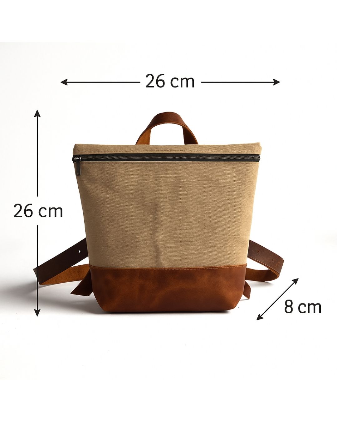 Kanvas kumaş ve hakiki deri detaylarla üretilmiş, hafif ve kullanışlı unisex mini sırt çantası.